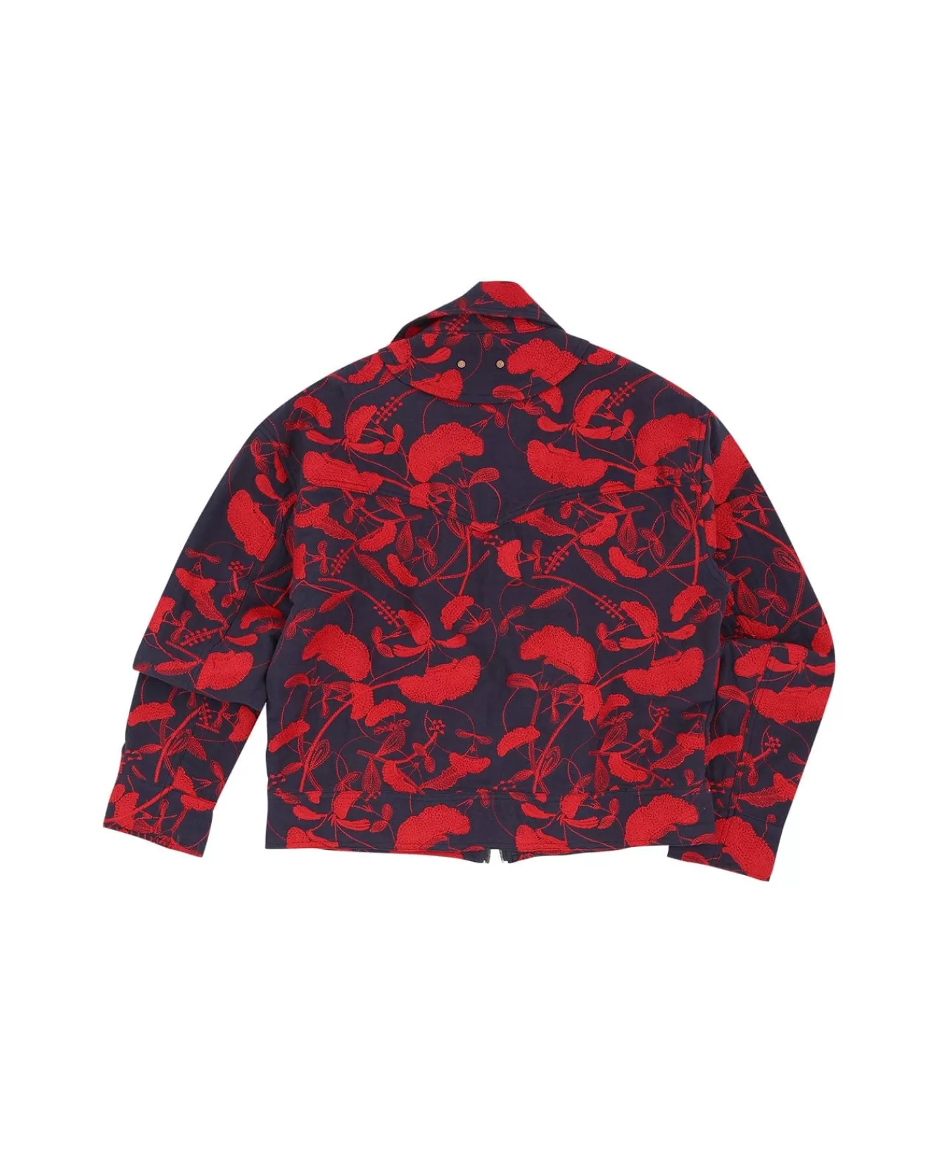 – Flower Embroidery Zip-Up Jacket- Leisurely Relaxed Silhouette- Flower Embroidery Italian Fabric- Hand-Stitched- Anders…