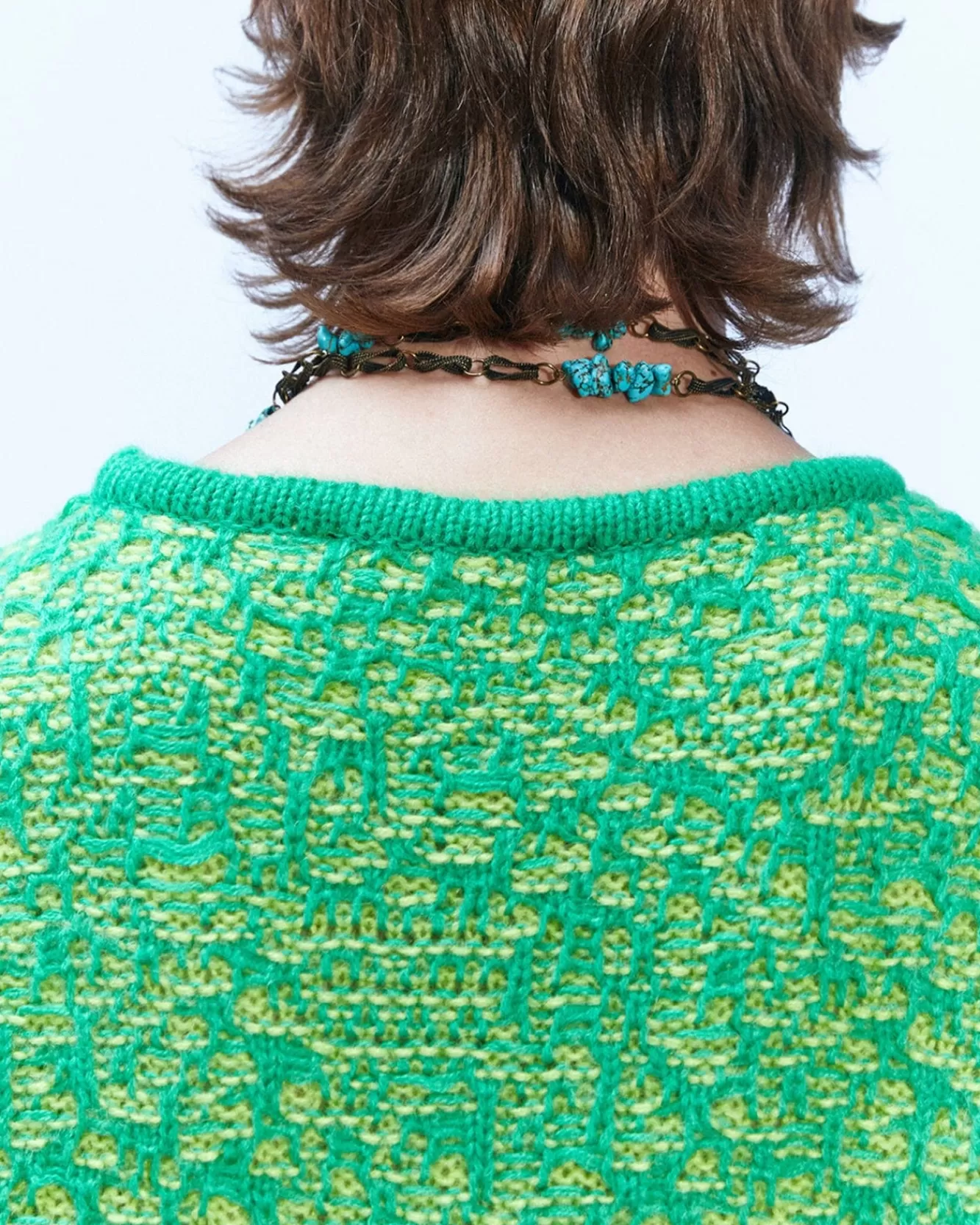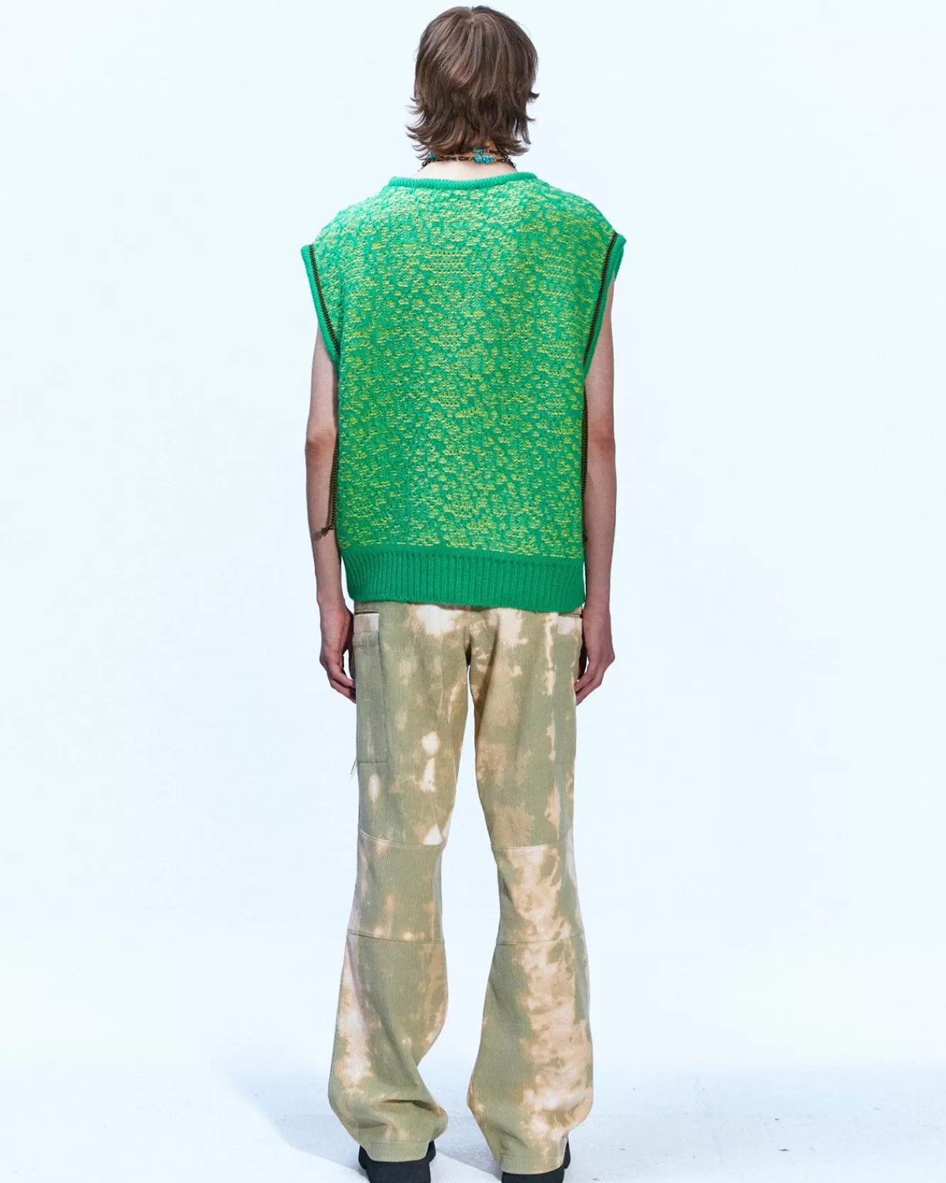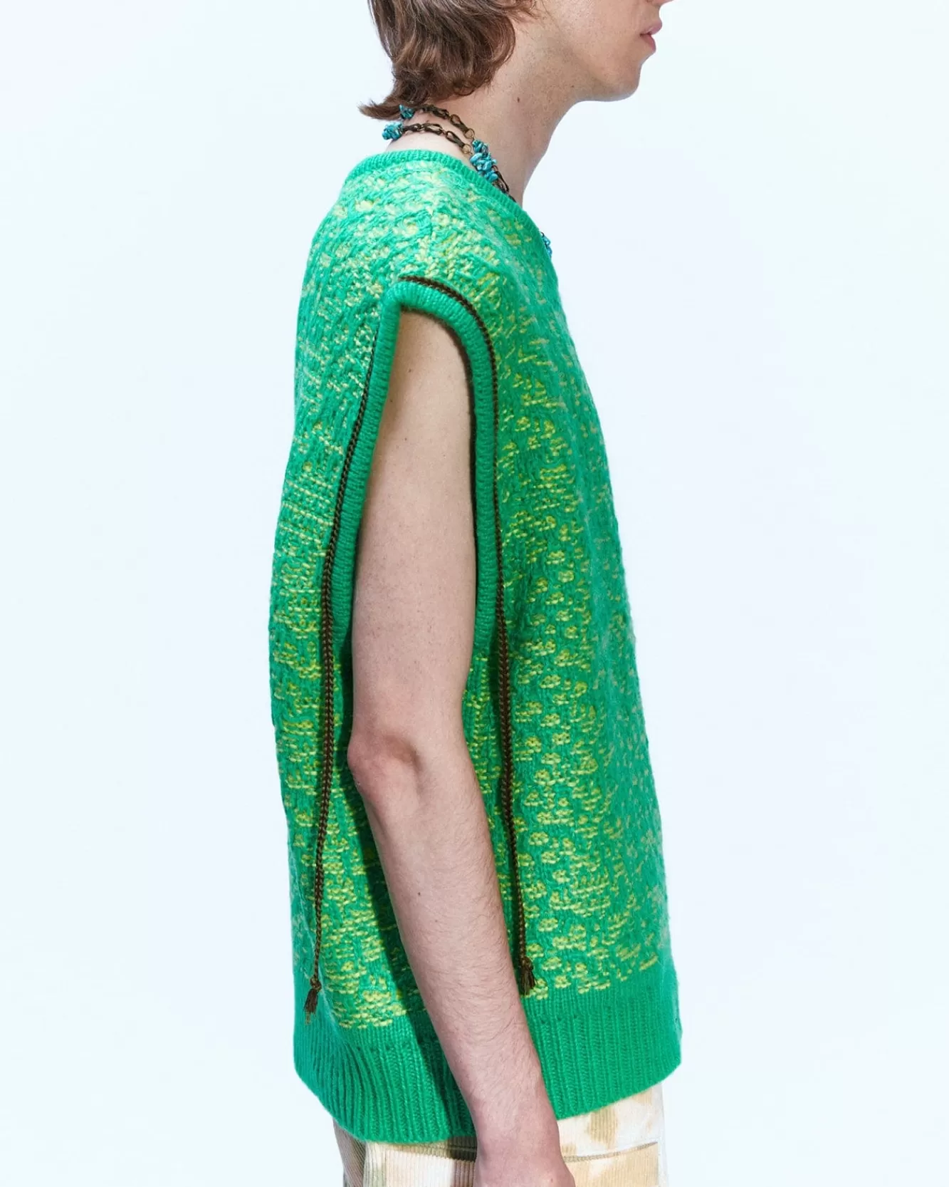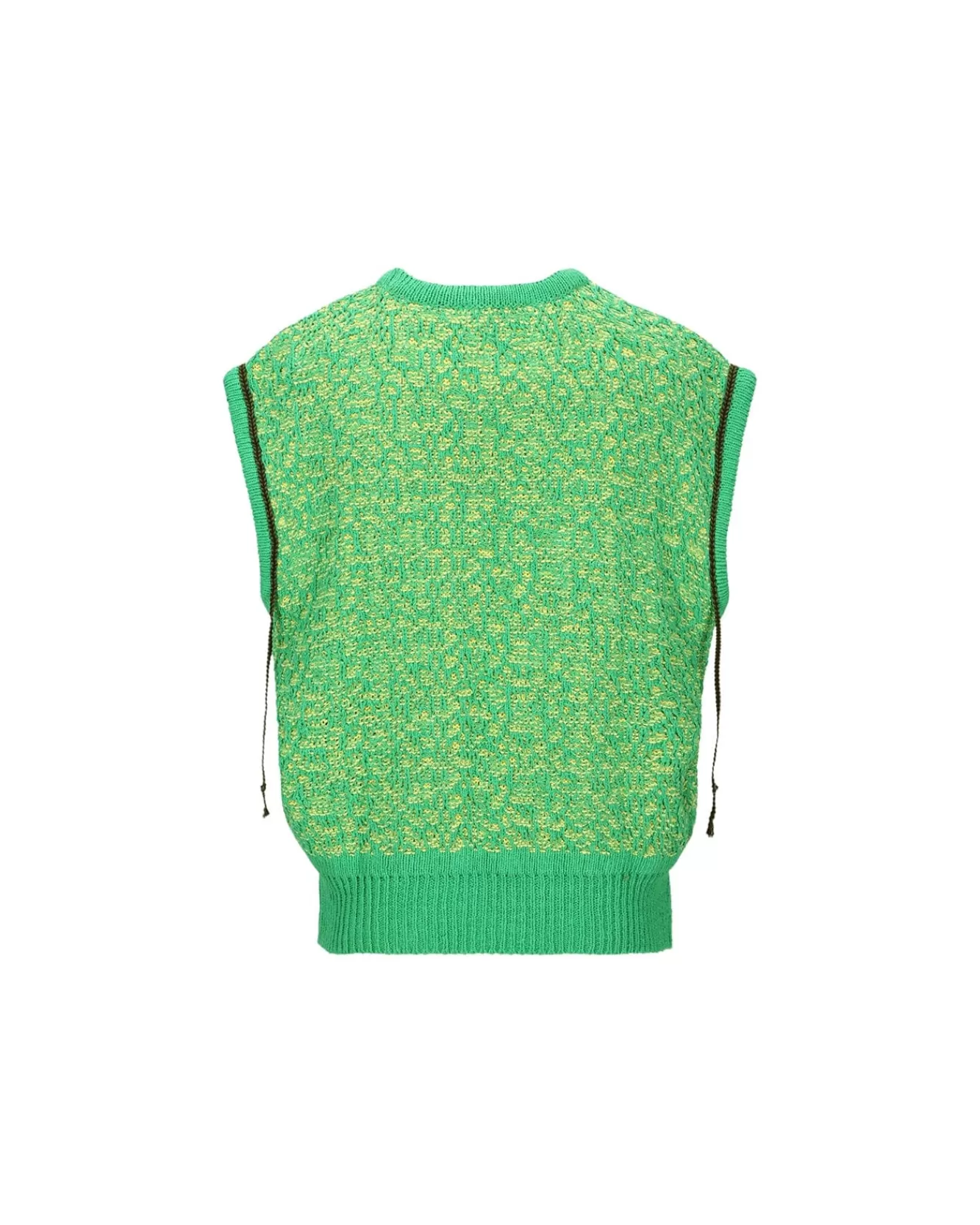 – Crewneck Knit Vest- Standard Fit- Cotton & Linen Blended Yarn- Trimming Detail- Rib At Neck, Armhole, Hem
