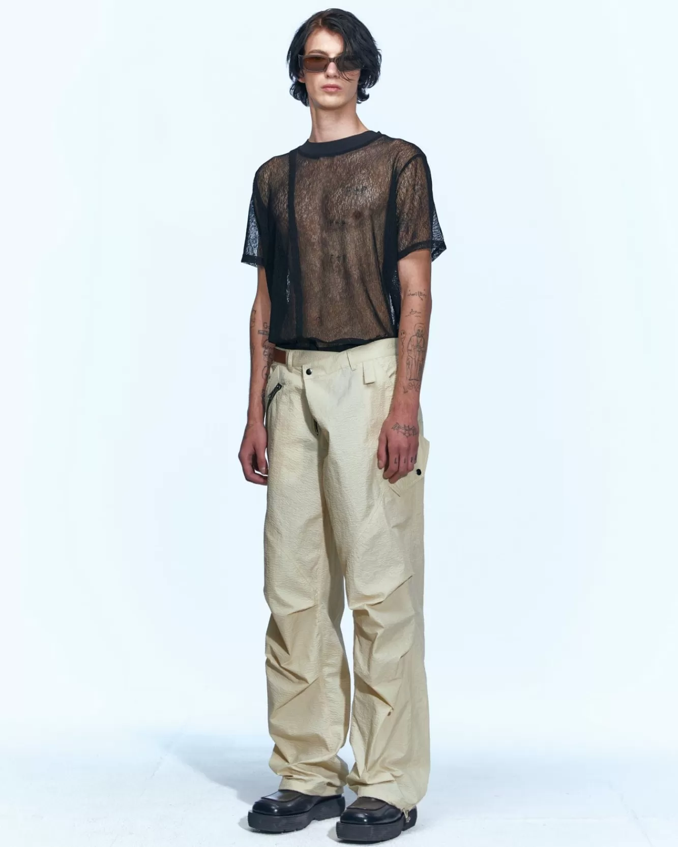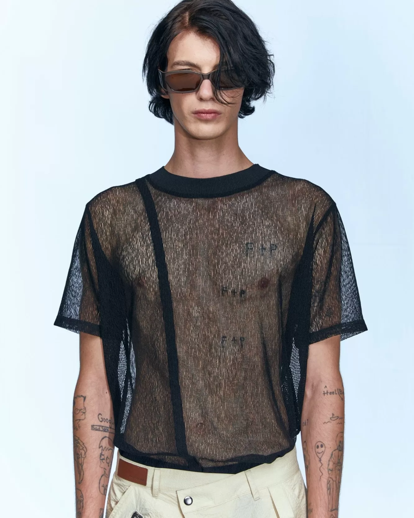 – Paka Summer Knit- Relaxed Silhouette- Chiffon Fabric- Cut At Front- Rib At Collar