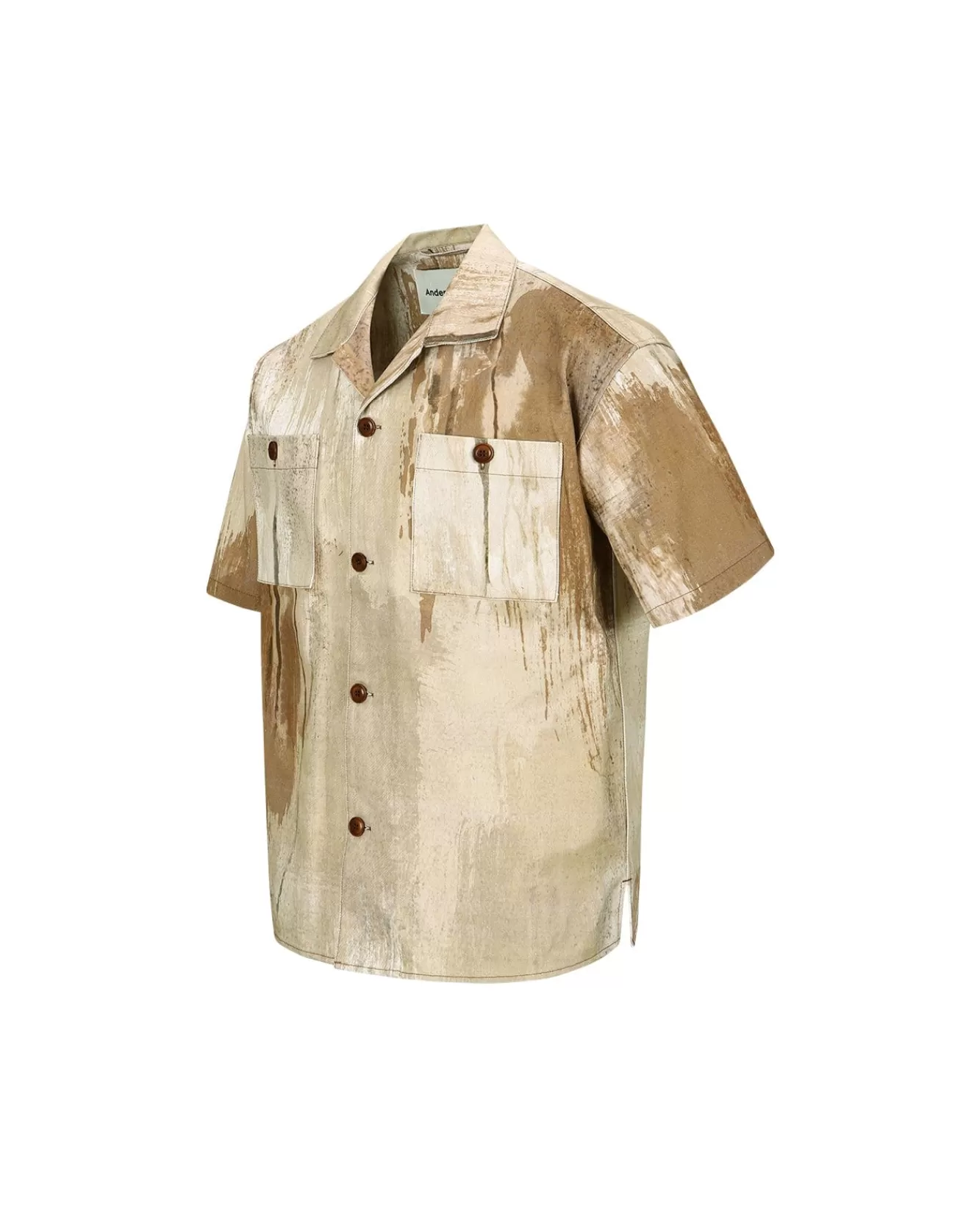 Men Andersson Bell Tawney Beige Print Open Collar Shirts Atb851M(Sand)