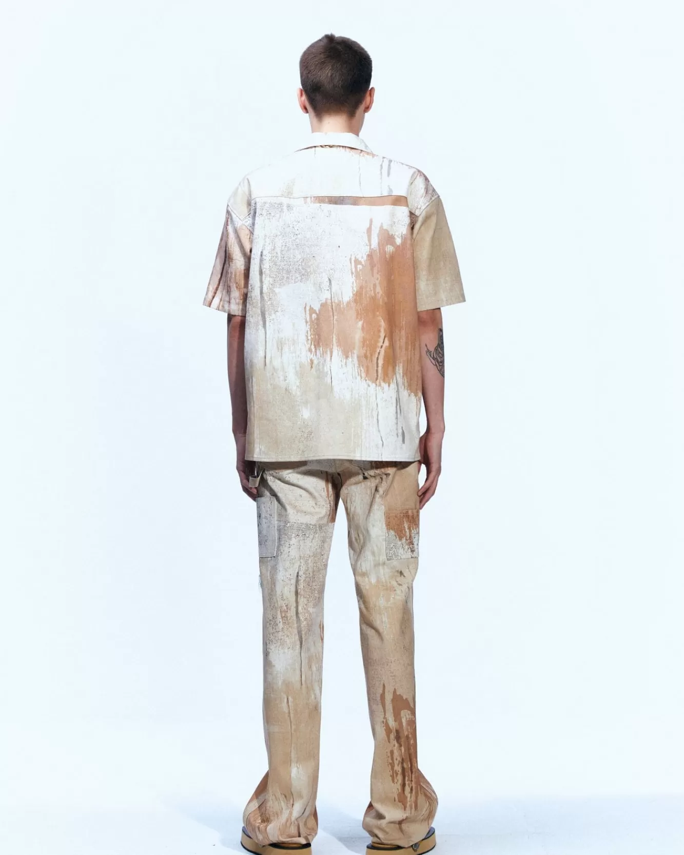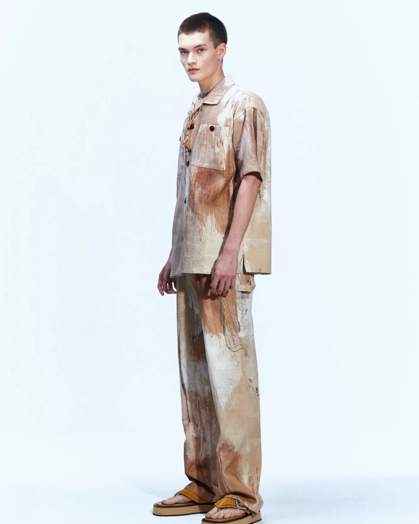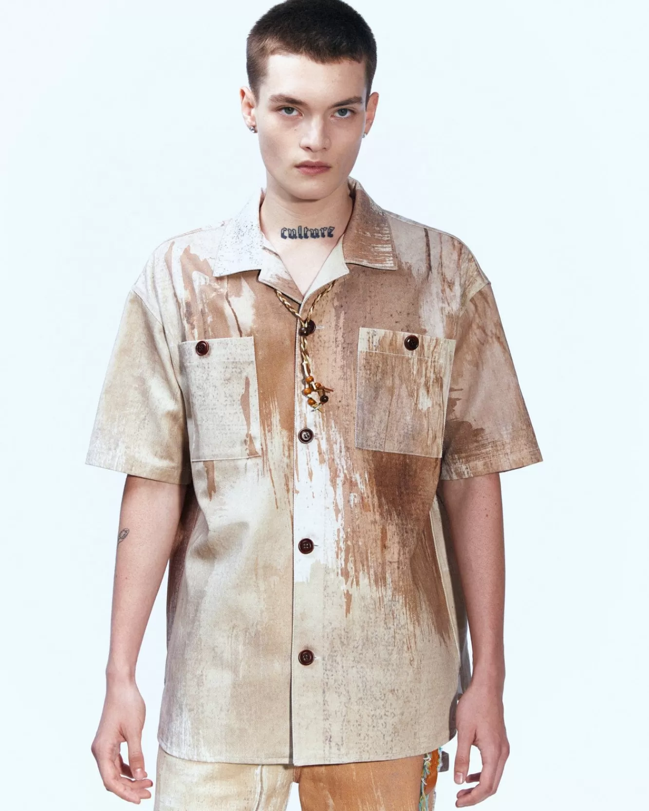 – Print Open Collar Shirts- Leisurely Relaxed Silhouette- Andersson Bell House Development Printed Cotton Fabric- Leathe…